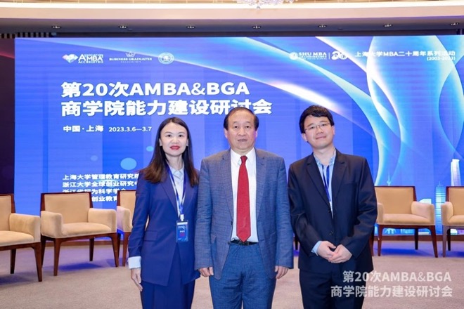 On March 6, 2023, the 20th AMBA & BGA Business School Capacity Building Seminar was held in Shanghai. The conference attracted nearly 80 member colleges and universities across the country, more than 200 university leaders and international accerditation work in charge to participate. Liu Ting, Executive Director of the International Exchange and Accreditation Office of the Business School, Xu Zhengda, deputy director, and Chen Xingyi, Accreditation Office, attended the seminar.