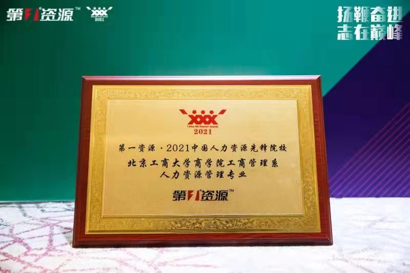 On December 2, 2021, the 2021 China Human Resources Strategic Management Annual Conference and 2021 China Human Resources pioneer selection hosted by First Resources the leading national human resources third-party media and industrial service platform, was held in Shanghai. Through the expert review process, the Human Resource Management major of the Business School of Beijing Technology and Business University and other 8 pioneer universities were included on the list.