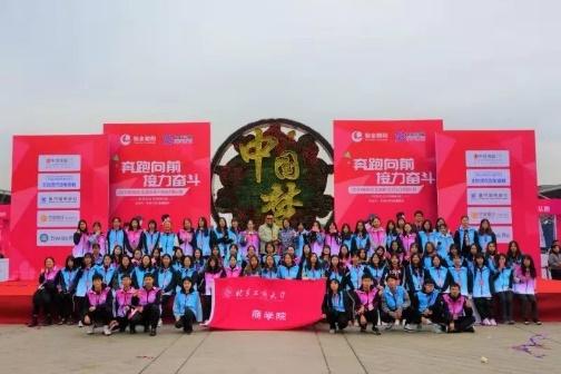 On the morning of October 13, the Volunteering Department of the Youth Volunteer Association in the Business School organized a volunteering session at Beijing Olympic Forest Park for over 80 undergraduates and postgraduates. The name of the event was “70-KM Team Running for Financial Institutions in Chaoyang District in 2019”. Fan Jiangtao, Deputy Secretary of CPC in the Business School, and Li Yuqing, Counselor of students in 2017, also participated in it. All the volunteers were full of enthusiasm. They started their work at dawn. The event was organized by Financial Services Office in Chaoyang District and hosted by Beijing CBD Financial Chamber of Commerce. Students from the school worked as volunteers during the event. Zhu Sheng, Deputy Head of Chaoyang District, delivered a speech for expressing thanks to the contribution of over 1,700 financial institutions to the economic development in Chaoyang District as well as to the support given by volunteers. Zhu Sheng and Fan Jiangtao, as well as other members, announced the start of the event.