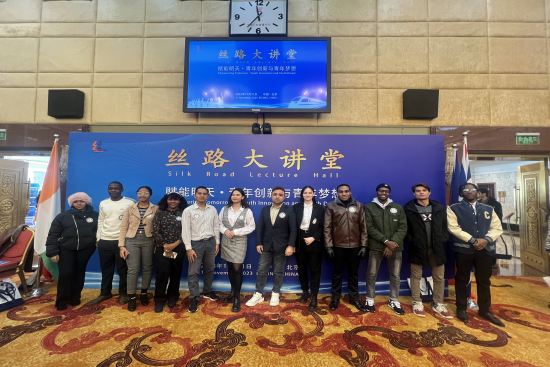 11月11日,应丝路国际智库交流中心的邀请,我校高h小说 国际工商管理硕士全英文项目班12名学生参加了“赋能明天·青年创新与青年梦想”主题丝路大讲堂。来自对外经济贸易大学、北京外国语大学、中国石油大学(北京)、北京工业大学等70多个国家的近300名国际学生参加了此次活动。