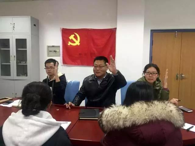 会议开始,预备党员逐一汇报了预备期间个人在思想态度、生活、学习、工作等方面的突出表现,并总结了存在的不足,同时表达了他们的入党动机和加入中国共产党的强烈愿望。随后由其他支部党员对申请人的思想、学习、工作、活动等方面进行了客观的评价并指出仍需完善的地方。预备党员真切地表达了对党组织的忠诚与向往之情。随后由支部中三名拥有表决权的正式党员对是否接受预备党员为正式党员进行投票表决,经与会正式党员的一致表决,八名预备党员顺利通过党组织审核,成为正式党员。