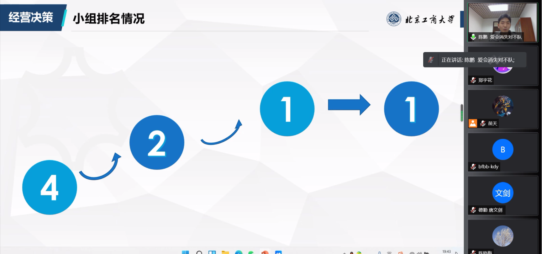 此次比赛规模创历年新高,共有来自29所高校的1087支队伍参加,经过初赛筛选,我校3支队伍晋级决赛。秉着“以练促赛、以赛促教、以教促用”的教育理念,我院高度重视本科教学实践赛事,专门邀请经验丰富的教师组建指导团队,实施高质量精细化指导。在师生的共同努力下,“爱会消失对不队”在决赛经营对抗环节稳扎稳打,小组赛排名稳步上升,连续两季度经营成果第一;在经营成果展示环节,沉着冷静,思路清晰,陈述流畅,回答准确,最终赢得“团体一等奖”,刷新了我校参加该赛以来的最好成绩。