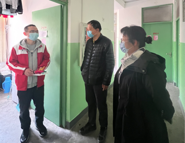 5月4日,学校因周边疫情导致进入临时管控状态,学院驻校辅导员再次深入本科生宿舍看望学生,并为学生送去口罩等防疫物资。