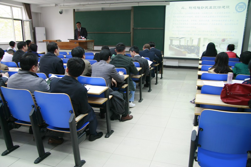 在西校区教一楼206召开双代会代表选举大会,与会教师达100人。会议由学院党委书记欧阳爱平主持。