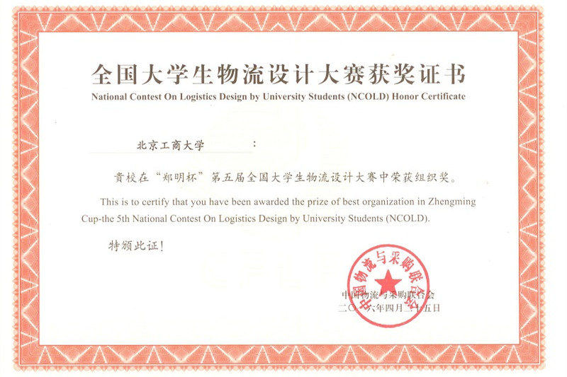 的支持下,物流管理系教师全员参与,严格按照大赛组委会的要求组织校园赛、初赛、复赛、决赛,最终获得了大赛组委会授予的“优秀组织奖”。两项大奖是我校物流管理团队师生团结奋斗的结果。