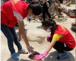 我们此行的目的,就是帮助李阿姨整理狗狗们的新家,为它们创造他们更好的生活环境,让他们体会到来自陌生人的关怀与温暖。首先,我们帮助李阿姨进行了废品的挑拣,尽管烈日炎炎,志愿者们仍然十分投入地工作,一批一批地运送着废品,温暖的爱心和执着的志愿精神令人钦佩。接下来,我们开始为狗狗们清扫狗舍,它们有的在围着我们摇尾巴,有的在地上打滚撒娇,还有的叼来玩具让我们陪他们玩耍。我们都可以记住他们的名字了:那个肥肥的叫熊猫,那个帅帅的叫老板……也有些狗狗很是怕生,也许是之前受到过人类的伤害吧,希望以后它们能够被足够多的爱包裹起来,走出阴影。