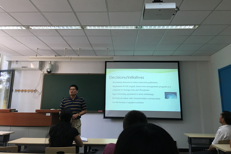 副院长杨浩雄教授、物流管理系张浩、崔丽、张京敏、周永圣、吕俊杰、孙红霞、张霖霖、赵川等教师以及研究生共同参加了讲座。讲座名为“Evaluating the Impact of Strategic Decisions on Firms’Financial and Operational Performance”。