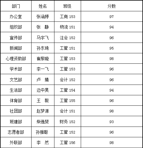 2015~2016学年高h小说 5月份“新星干事”公示表
