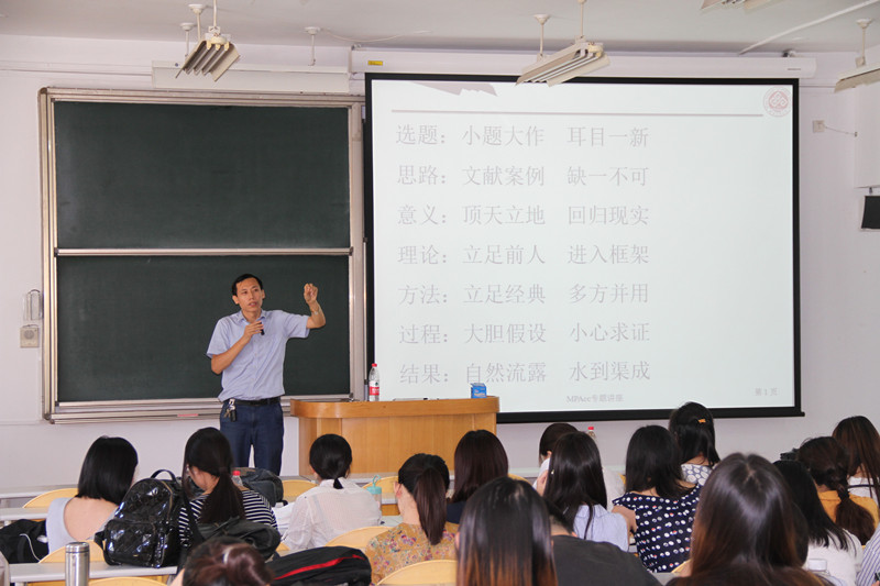 本次讲座内容丰富、结合案例、通俗易懂,贴近学校学院要求、贴近近年论文成败、贴近研究生的实际需求。大部分学生反映本次讲座非常及时、非常解渴、受益良多,研究生通过此次讲座更加清晰了解了论文的选题要点和写作要求,希望多开设此类讲座以答疑解惑、提升案例研究水平。