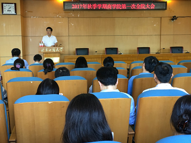 全体教师在综合楼三层报告厅召开2017年秋季学期第一次全院大会,会议由院长王国顺主持。