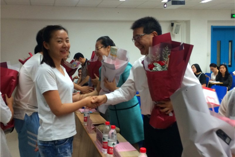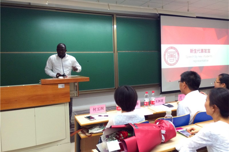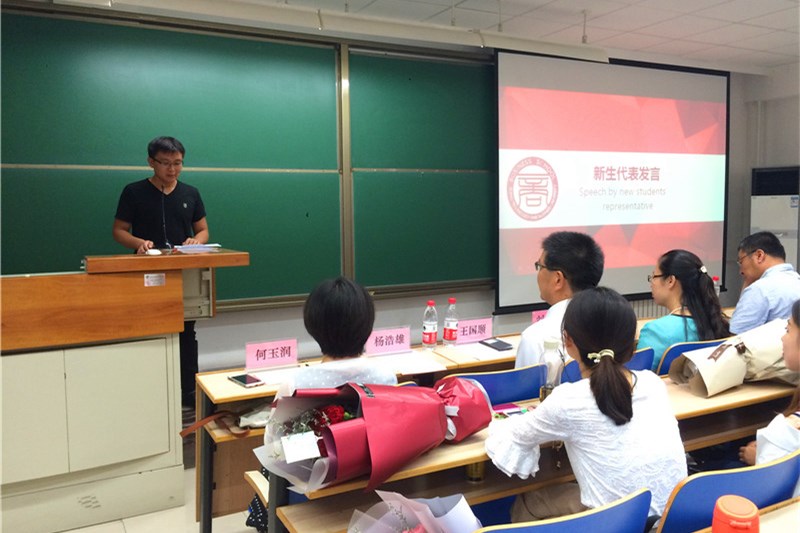 新生代表史书波同学和留学生代表Ibrahim同学,分别表达了他们对考取我校MBA的喜悦之情以及对我校生活的美好期望,并希望自己能够在几年的学习生活中提升自我,展望未来。时值教师节来临之际,2017级非全日制班的同学还为老师们精心准备了鲜花,表达对老师们的祝福。