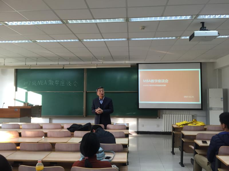 本次座谈会以对过去两个月教学情况的总结为中心,并对以后课程安排进行了深入探讨。王真主任首先宣布了“明是坛”重新启动的消息,并对本论坛的背景及其宗旨做了明确阐述,号召17级MBA学生积极参与。