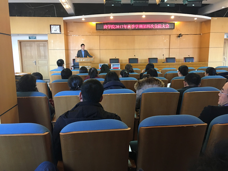 全体教师在综合楼三层报告厅召开2017年秋季学期第四次全院大会,会议由院长王国顺主持。