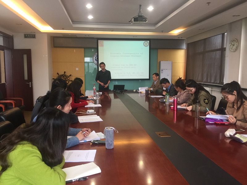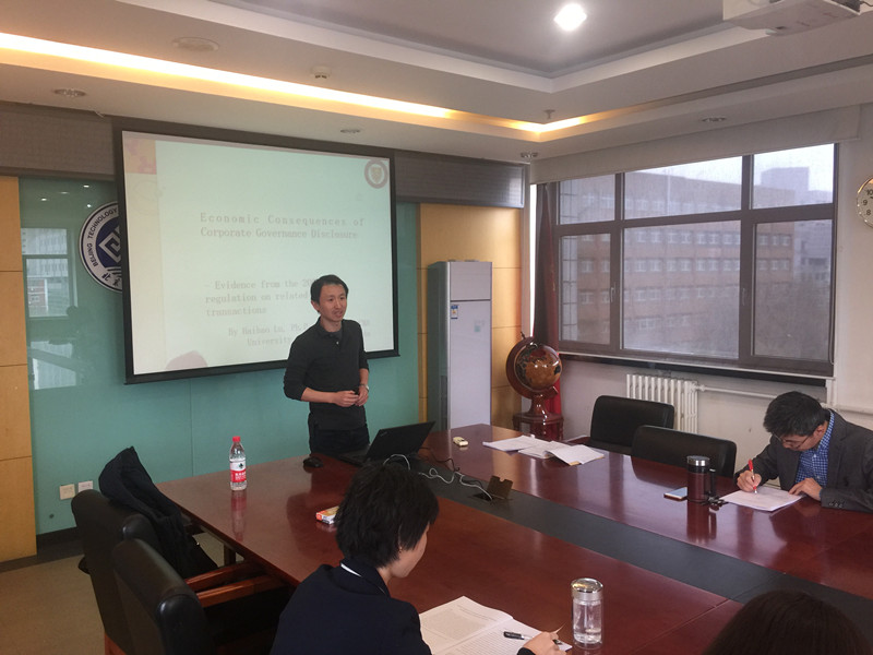 3月30日,应会计系邀请,加拿大滑铁卢大学会计与金融学院副教授路海昊博士为会计系师生进行学术报告。报告题目为:公司治理披露政策的经济后果:来自SEC2006年关联方交易规定的证据。会计系主任张宏亮主持报告,高h小说
