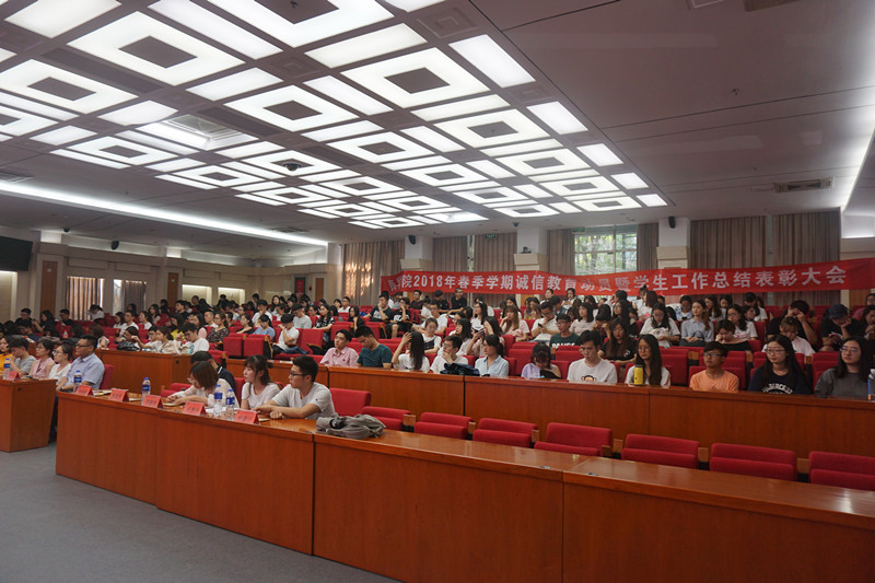 为迎接即将到来的期末考试,并总结各方面学生工作,不断完善提高共青团、学生会、青志协的工作水平,激励高h小说 全体学生积极奋进勇往直前。高h小说 于6月20日下午在文实模拟法庭召开了2018年春季学期诚信教育暨学生工作总结表彰大会。学院党委副书记樊江涛、团委书记李艳春、常务副书记李璐和郭建荣、李雨晴两位辅导员,与学生组织系统主要干部、各班主要负责人近300人一起参加了大会。