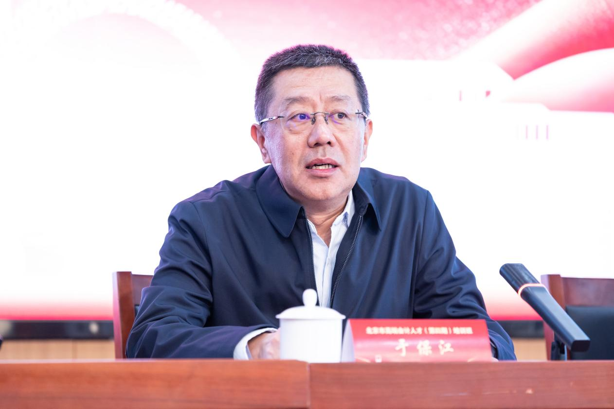 北京市财政局一级巡视员于保江代表北京市财政局作开班动员。于保江强调本次培训旨在培养一批知识结构优化、实践经验丰富、创新能力突出、职业道德高尚、具有国际视野和战略思维的高层次会计人才,为服务首都“四个中心”建设,促进首都经济社会高质量发展奠定坚实的人才基础。于保江在讲话中希望学员们珍惜此次学习机会并提出三点要求:一是静心学习,营造勤奋好学的良好氛围;二是深入思考,牢固树立学以致用的学习理念;三是严于律己,切实遵守相关管理规定。