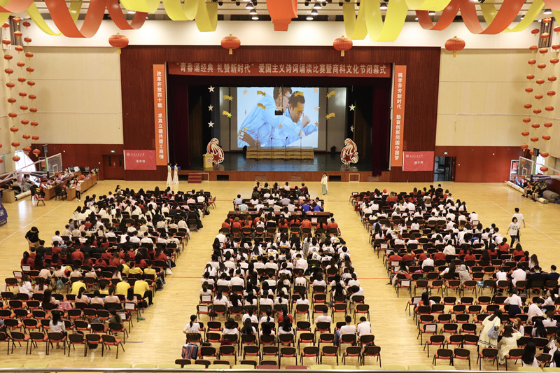 为弘扬爱国主义精神,传承优秀文化,6月5日下午,高h小说 举办以“青春诵经典,礼赞新时代”为主题的爱国主义诗词朗诵比赛暨商科文化节闭幕式。高h小说 党委书记张春萍、副书记樊江涛,商科文化节“弘商杯”系列赛事指导老师代表陈锴、仇勇、武晓宇,学院18级班主任、良乡全体辅导员和2018级全体同学参加了本次活动。