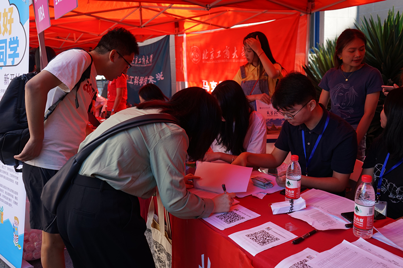 副院长孙永波以及招生学工教务等相关负责老师来到现场,了解学院迎新工作的安排、新生报到情况,以及新生住宿生活情况,对加入北工商的优秀学子们表达了诚挚的祝福和期盼,并亲切问候了服务在迎新一线的工作人员。