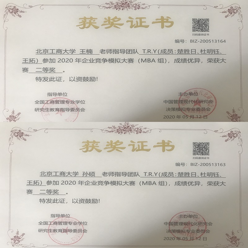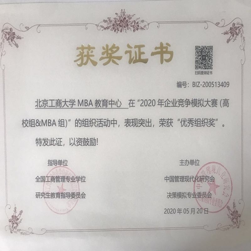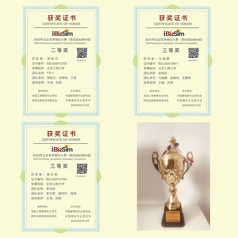 2020年企业竞争模拟大赛(高校组&MBA组)于3月份正式启动。经过初赛、复赛、半决赛、总决赛四轮比赛,于2020年5月10日圆满结束。此次参赛是我院MBA教育中心首次自行组织参赛,在我院参赛的七支MBA队伍中,共计荣获一个二等奖,两个三等奖,指导教师王楠、孙硕老师荣获优秀指导奖,高h小说 MBA教育中心荣获优秀组织奖。
