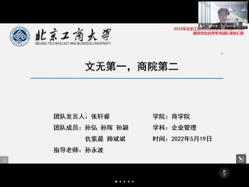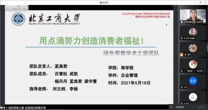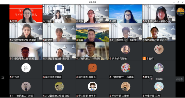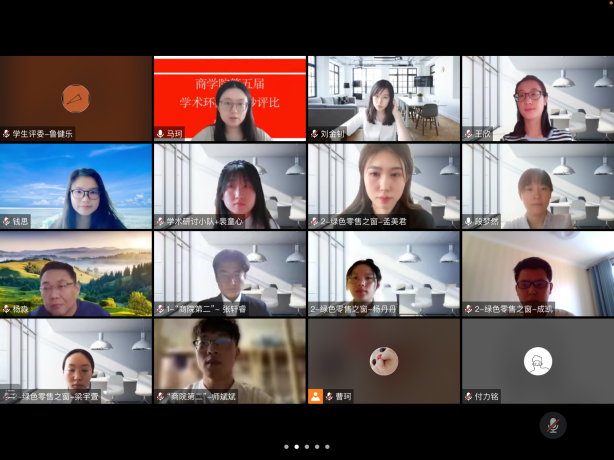三支队伍依次展示完毕后,现场评委进行线上打分并由工作人员汇总、排名。最终,“商院第二”团队和“绿色零售之窗”团队以第一、二名的成绩被推选至学校参加决赛比拼,“学术研讨小队”获得第三名。