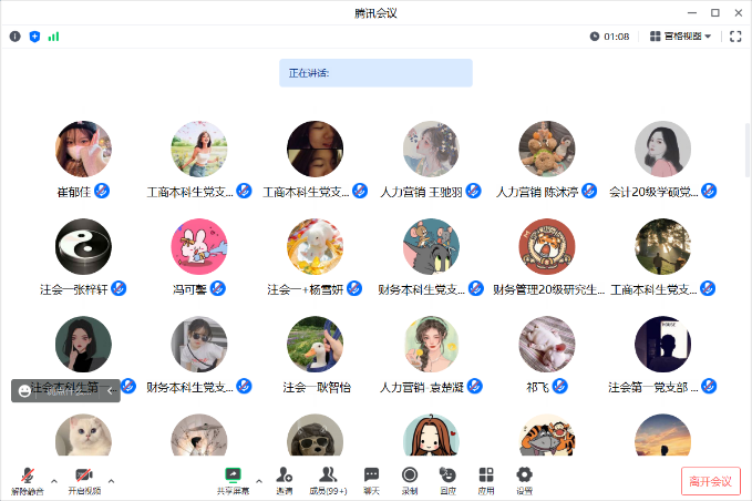 重温入党誓词,不忘初心之志。会议伊始,张倩带领全体毕业生党员重温入党誓词,“我志愿加入中国共产党,拥护党的纲领……随时准备为党和人民牺牲一切,永不叛党!”线下和线上的毕业生党员们在毕业之际再次面向党旗举起右拳庄严宣誓,以铮铮誓言再表入党初心,一字一句彰显报国之志。