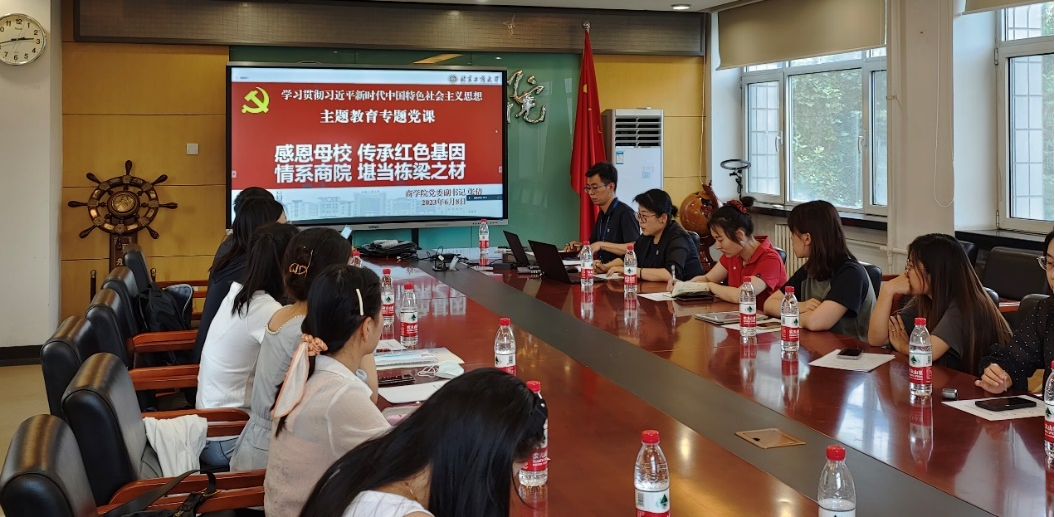 为推动学习贯彻习近平新时代中国特色社会主义思想主题教育走深走实,切实推动党的二十大精神在商院学子中落地生根,进一步引导毕业生党员坚定理想信念、强化党员意识,激发毕业生党员使命担当,走好未来人生之路,在毕业生党员即将离校之际,6月8日下午,高h小说 党委面向2023届全体本、研毕业生党员举行“毕业前的最后一堂党课”专题教育,此次活动采取线上线下相结合的方式进行。高h小说 党委副书记张倩讲授主题教育专题党课,辅导员冯可馨、全体本研毕业生党员参加。专题教育活动由祁飞主持。
