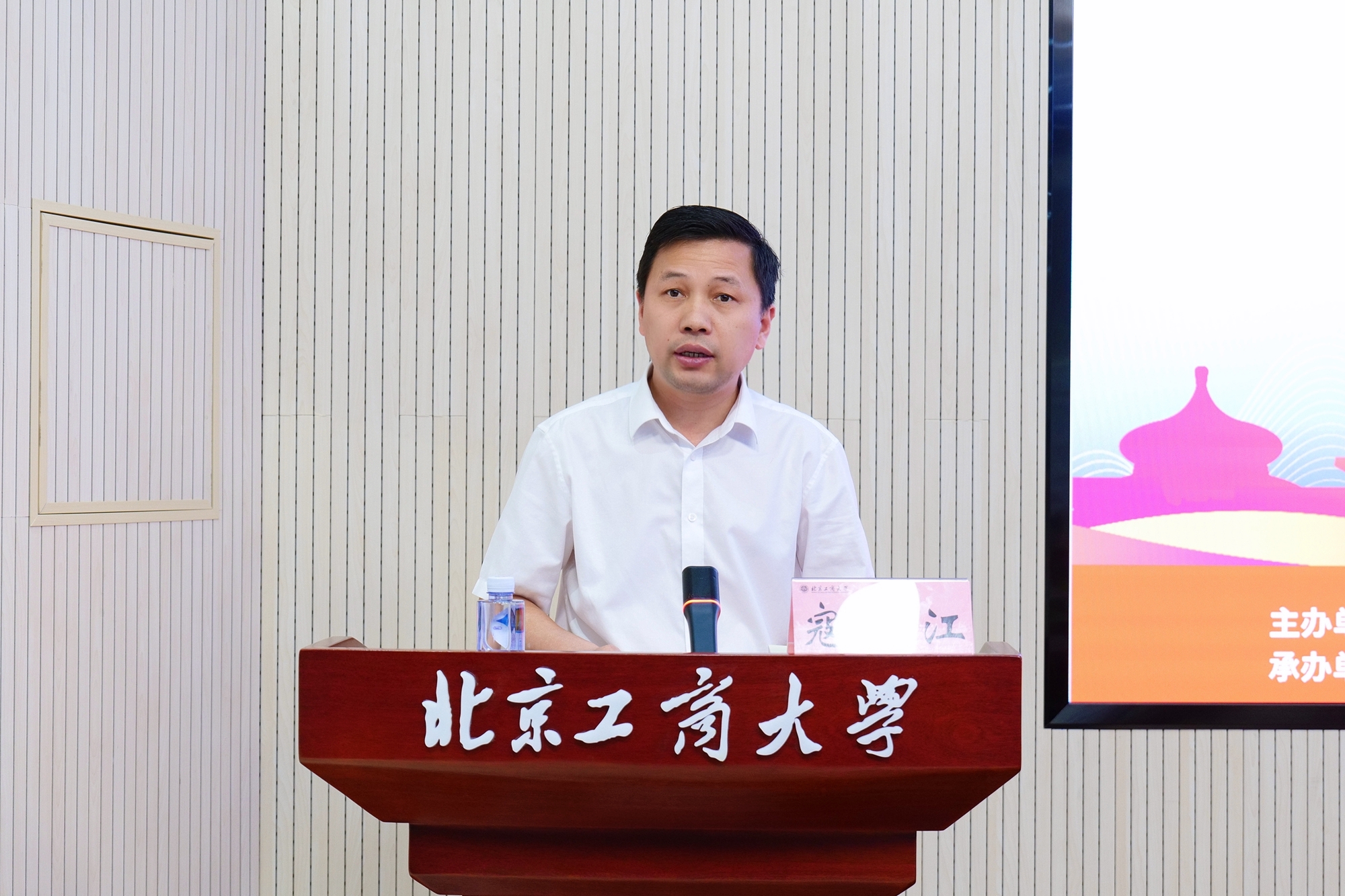 寇红江在主持中谈到,作为北京市委宣传部、市委教育工委主办的“‘京’彩文化 青春绽放”行动计划26所参与高校之一,我校自活动启动以来,充分挖掘自身优势,精心设计载体平台,目前已陆续开展了“青春拍客秀”“走进博物馆”“走进北京互联网法院”等活动,受到同学们的欢迎,也产生了良好的社会反响。这次“中轴线文化遗产大讲堂进校园”,是“‘京’彩文化 青春绽放”行动计划的重要内容,希望同学们通过讲座,充分了解中轴线文化遗产知识,进一步增强文化自信与历史自觉,自觉做中轴线优秀传统文化的保护者、继承者和传播者,推动以北京中轴线为代表的中华优秀传统文化焕发新的生命力。
