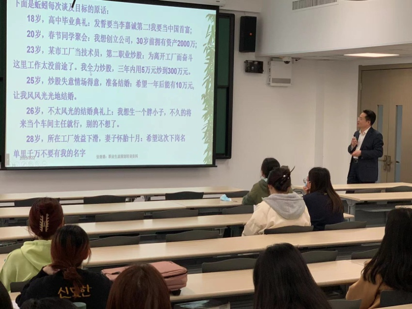 张继德教授从职业生涯规划通识、如何规划职业生涯、如何实现规划这三个方面对与会研究生进行了基础知识层面的普及。他以《蚯蚓故事》、《你在为谁打工》等有趣的小故事开篇,引导同学们逐步了解职业发展的关键要素。他讲到,梦想就是规划,是深藏在内心深处最深层的动力,能激发生命中最大的潜能;确立职业发展目标的标准是收入与对社会有利的总和,要从专业发展情况、国际国内行业发展态势、以往就业情况、需要考取的证书、对专业有帮助的实习经历等方面来综合考虑、规划职业生涯;他建议学生在规划职业生涯时,首先确定职业锚,要夯实基础、精进业务,要进行锻炼,要与时俱进逐步接近职业发展目标。