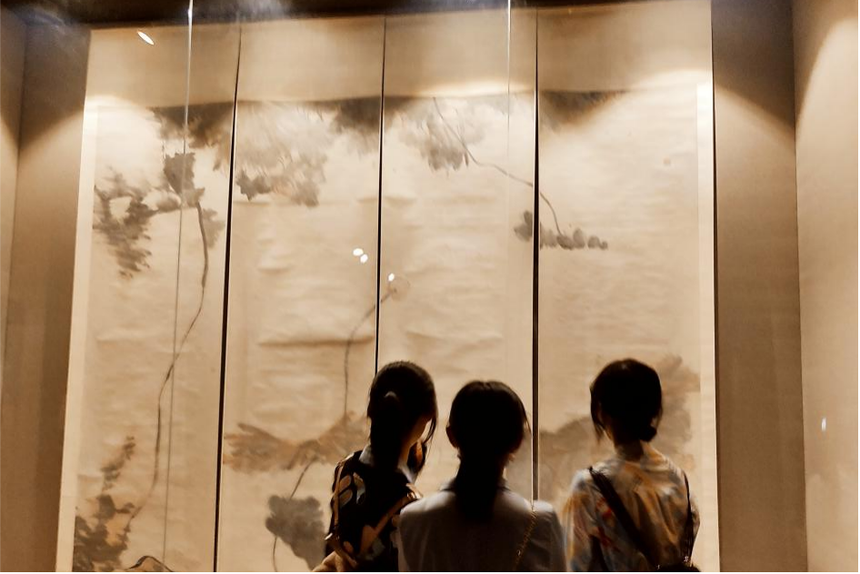 参观过程中,同学们首先集体参观了“墨韵文脉”系列主题展厅。该展厅以最具中国艺术特质的写意为核心理念,将中国明清之际和现代以来的美术史上写意精神和写意水准的艺术作品齐聚一堂。主要是八大山人、石涛与20世纪以来中国写意艺术展。在展厅中,同学们透过画作平静的纸张,感受到画家蕴藏于笔墨之下或汹涌、或悠长的艺术情感。接着进入中国美术馆素有“皇冠上的明珠”之称的藏宝阁,同学们的目光顿时被一幅幅含蕴隽永的画作所吸引,大家认真观赏,用心感受。之后,同学们自行参观“致敬经典”“塔高水长”“美美与共”等系列主题展览,领略馆藏经典,品鉴中华优秀传统文化的创新发展,感受红色革命文化的弘扬传承,以及中外文明交流互鉴的优秀成果。