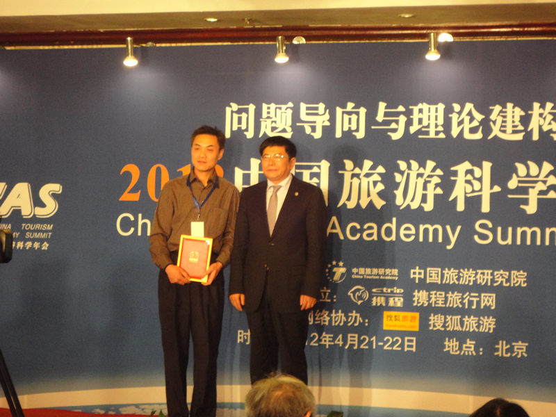 我校旅游专业教师王敬武副教授,在国家旅游局2012中国旅游科学年会上以《对旅游体验“硬核”学术地位的质疑》的学术论文荣获一等奖(也是唯一一位一等奖获得者),并以旅游体验为题做了大会主旨发言。王敬武副教授在主旨发言中,以现象学为视角,以严谨的科学态度和缜密的逻辑推理,从旅游科学整体结构的高度,对目前主宰旅游科学基础理论研究的旅游体验硬核理论提出颠覆性的质疑,赢得中国旅游研究院和与会专家学者的高度评价,成为本届旅游科学年会的一大学术亮点。