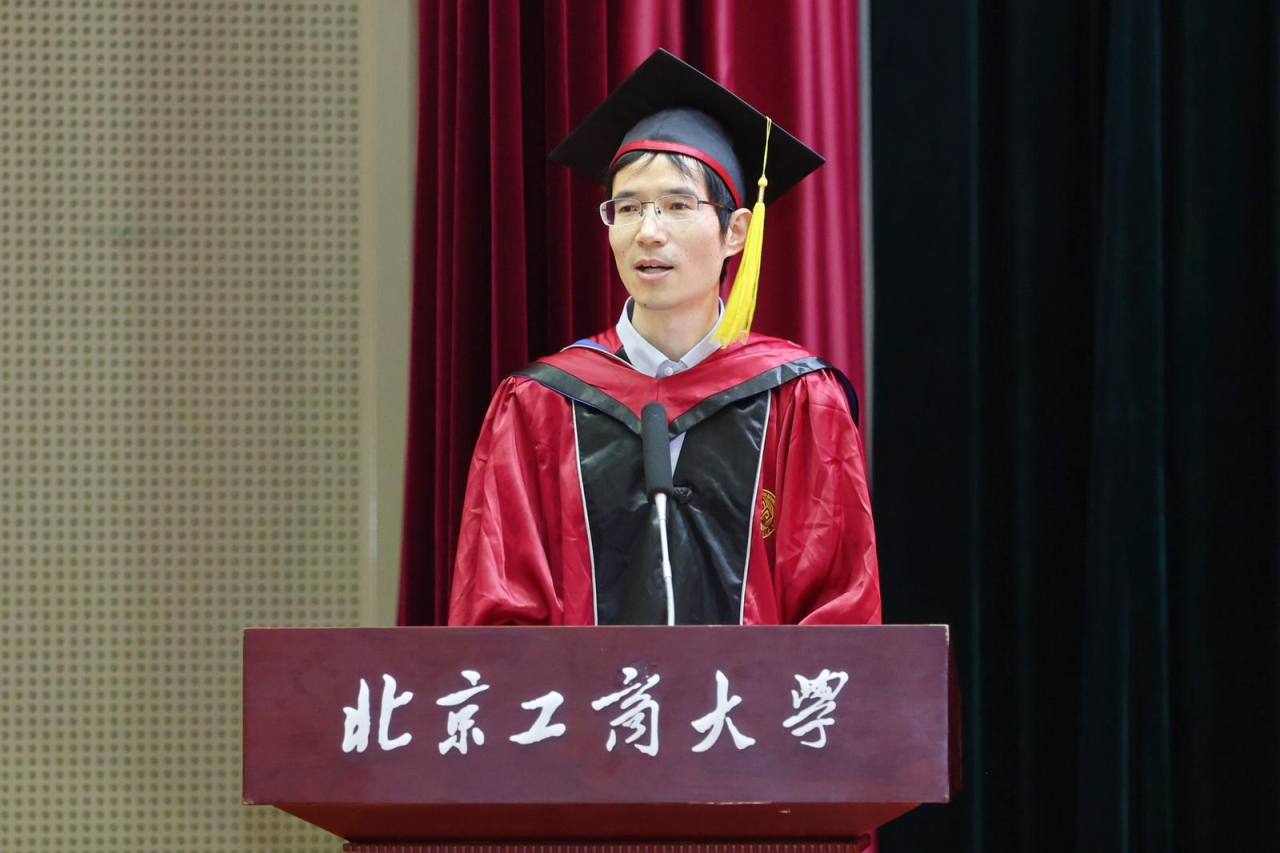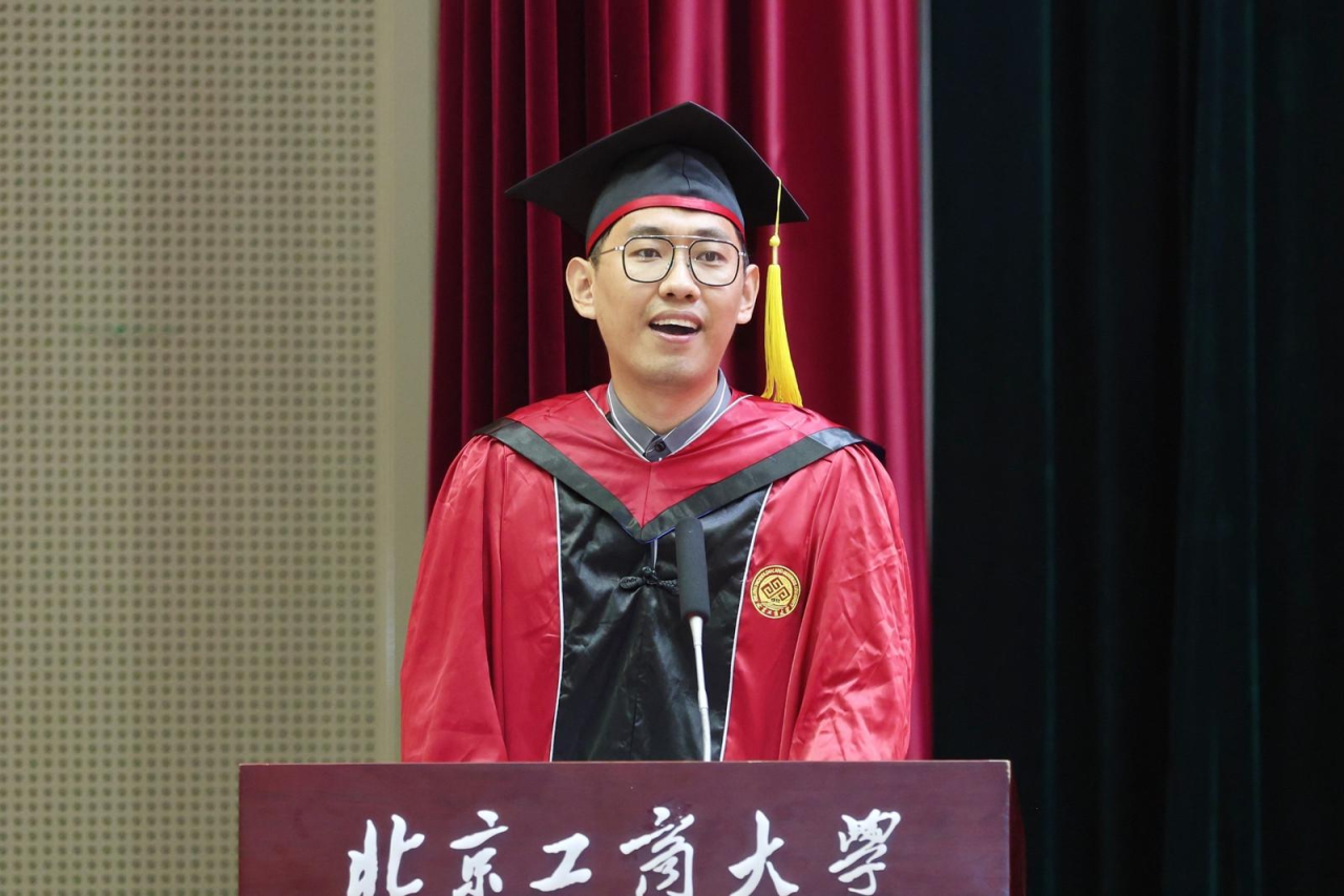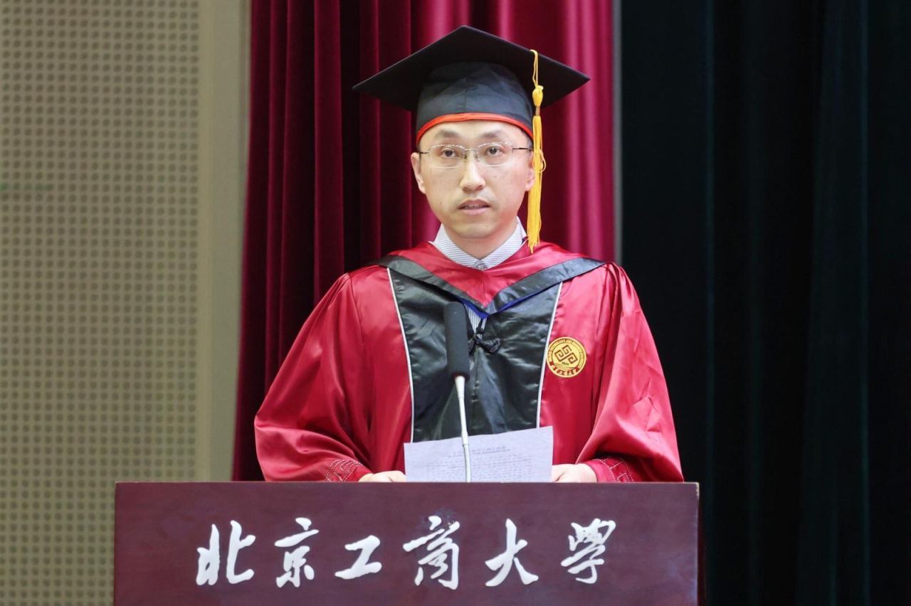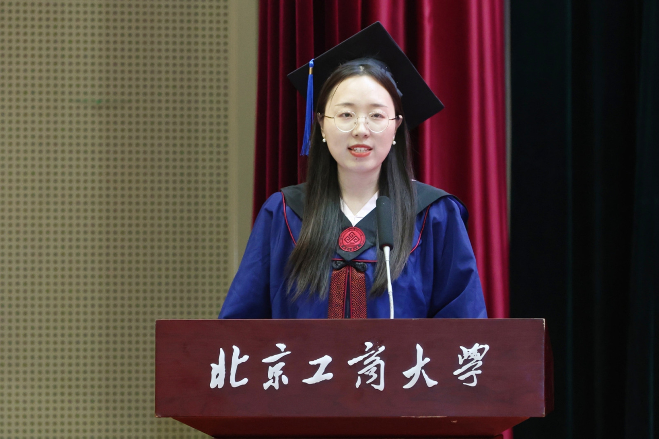 注会202班郝帅代表高h小说 2024届全体本科毕业生向精心培育我们的母校以及辛苦教导我们的老师,表示了最衷心的感谢和最崇高的敬意。他谈到,作为新时代的北工商学子,我们要肩负起新时代的重任,不负时代,不负韶华,成为新时代奋勇前进的搏击者。在以后的生活中,也要带着母校的期望、老师们的教诲、朋友们的鼓励,砥砺前行,做怀揣梦想脚踏实地的人、做拥有智慧富有激情的人、做德才兼备敢挑重担的人,带着“求真 立德 勤奋 创新”的校训精神,以青春之名,赴时代之约。
