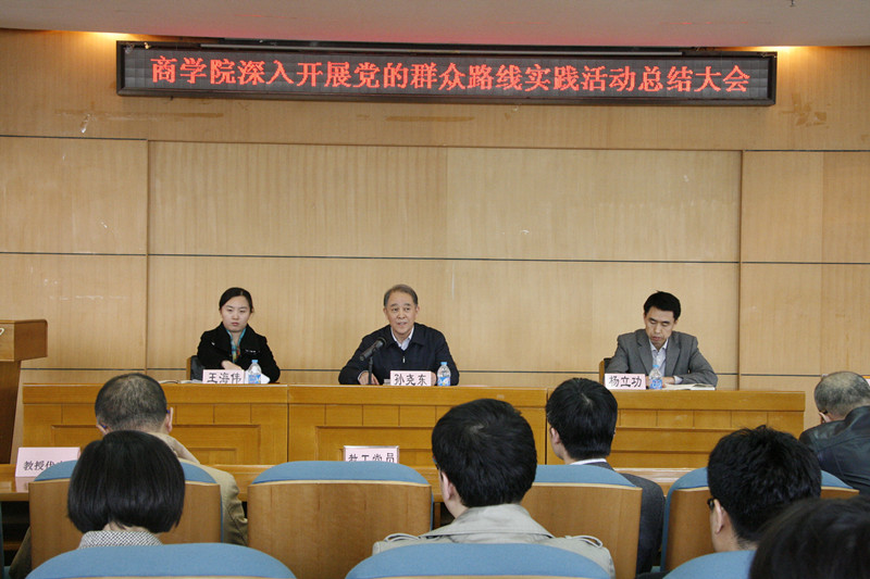 在阜成路校区召开党的群众路线教育实践活动总结大会。学院领导、全体教工党员、教授代表、党外人士代表、阜成路校区学生党员代表、良乡校区学生党员代表共95人参加会议。学校党委书记孙尧东、学校联络组杨立功副处长、王海伟副处长出席会议。会议由王国顺院长主持。