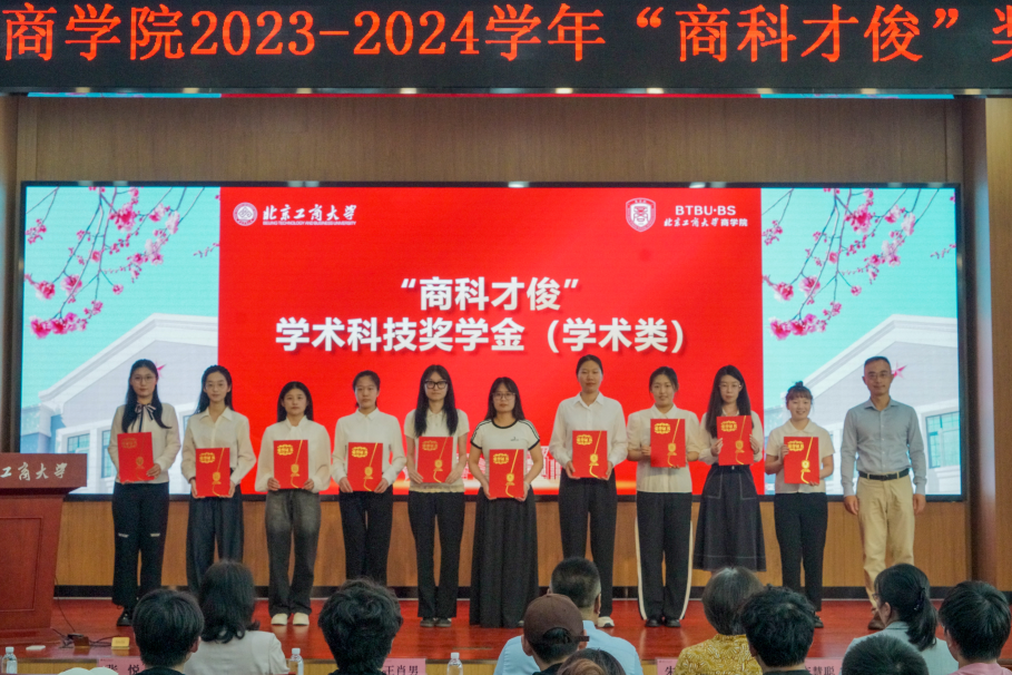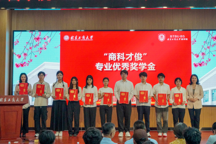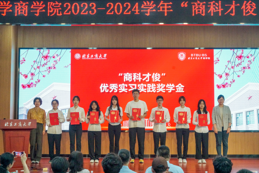 与会嘉宾为获得商科才俊专业优秀奖学金、学术科技奖学金、优秀实习实践奖学金和自强奖学金获奖者进行了颁奖。