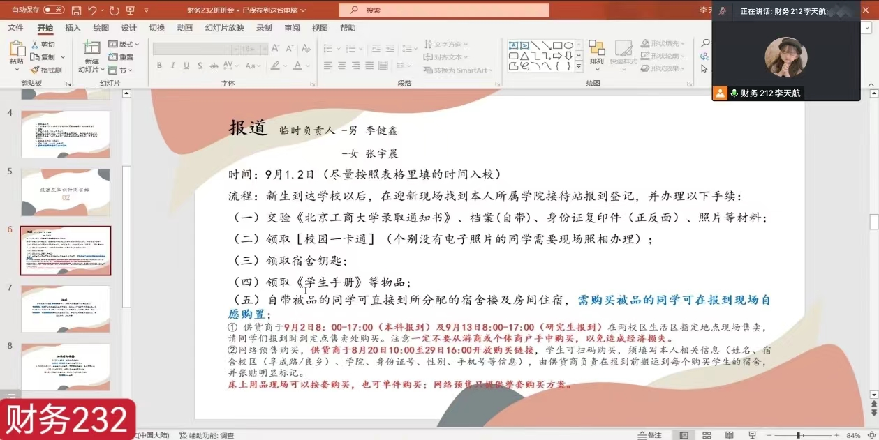 本科新生班会上,各班班主任强调了到校报到的相关安排,对报到时间、地点及需要准备的物品和证明材料等进行了反复嘱咐,嘱咐同学们合理安排出行,提高安全防范意识,平安到校。