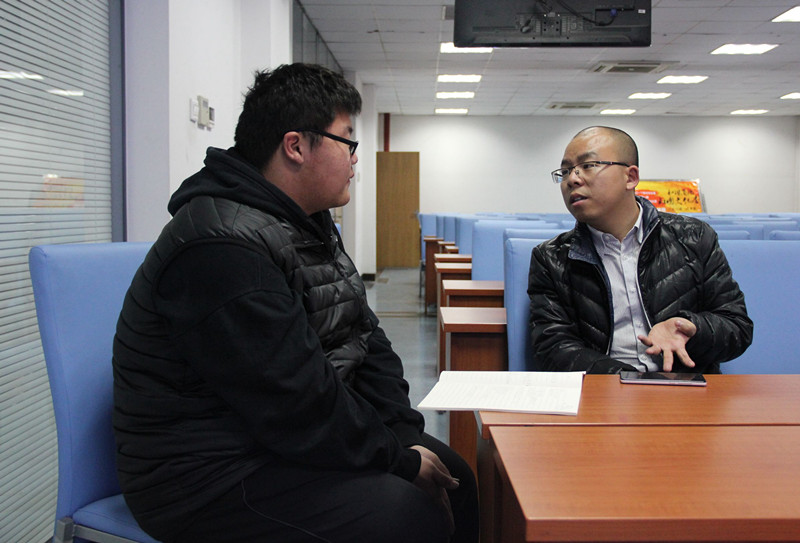 学生会新闻部记者对李俊超进行个人专访。