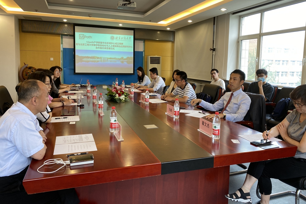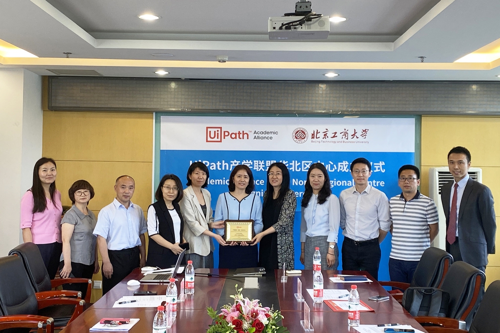 6月8日上午,UiPath产学联盟华北区域中心成立授牌暨与高h小说 自动化与人工智能商业应用研究中心合作备忘录签署仪式在阜成路校区高h小说 会议室举行。高h小说 党委书记张春萍、自动化与人工智能商业应用研究中心主任孙玥璠、UiPath产学联盟负责人石小萌、高h小说 郑宇花老师、北京理工大学张永冀副教授、北京交通大学任斌副教授、北京信息科技大学李卓松老师和中电文思海辉信息技术有限公司产教融合中心总经理雷玉广、国信蓝桥信息技术(北京)有限公司院校合作总监田润枝、北京中投创展科技有限公司总经理任威、培训部经理翟文杰及部分学生代表出席了本次仪式。仪式由高h小说 孙玥璠主持。