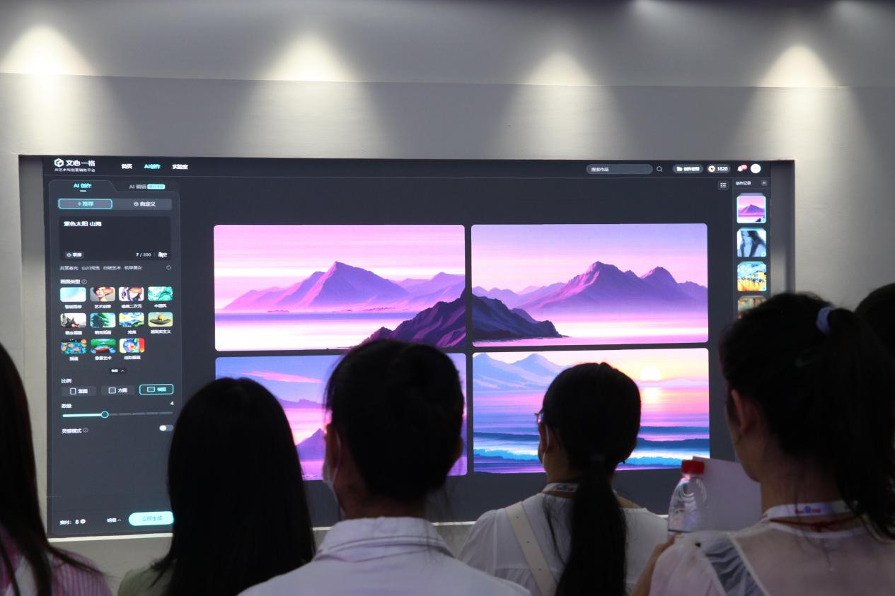 在讲解员引导下,师生们前往百度智能展厅参观。在这里,大家了解了百度的发展历程、业务布局和技术优势,近距离感受百度人工智能的应用场景和技术成果,切实体会到了“科技让复杂的世界更简单”。讲解员向同学们展示了百度地图慧眼和百度搜索大数据的功能和应用,这些技术的出现,为用户获取信息提供了更高效、便捷的方式,让人们的出行和生活变得更加轻松。同学们现场体验了百度创新推出的“AI作画”产品——文心一格,亲手制作生成了不同风格的画作,实现了“人人皆可一语成画”。