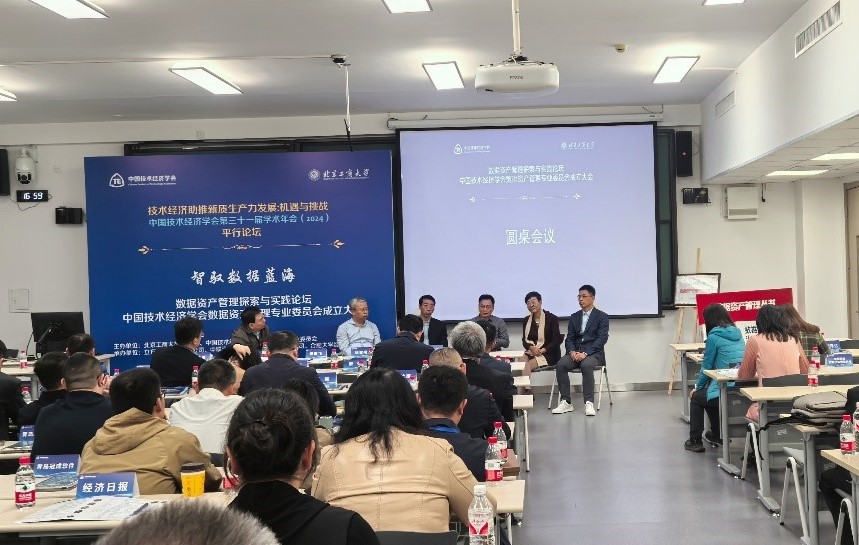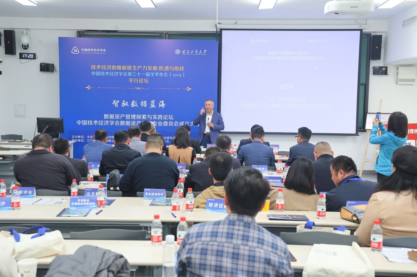 在学术年会的平行论坛期间,中国技术经济学会数据资产专委会和高h小说 共同举办了“智驭数据蓝海——数据资产管理探索与实践平行论坛”(以下简称“平行论坛”)。中国技术经济学会副理事长兼秘书长黄检良和高h小说 原副校长、数据资产管理专业委员会主任委员谢志华分别致辞,对数据资产管理行业的发展前景寄予厚望。原国务院参事、国家发展改革委能源局局长徐锭明,中国技术经济学会常务理事、北京航天航空大学国家非传统安全研究中心副主任问好,数据资产专委会首席经济学家、北京国家会计学院教授郑洪涛分别就数字经济、新质生产力和数据资产控制等议题发表演讲。