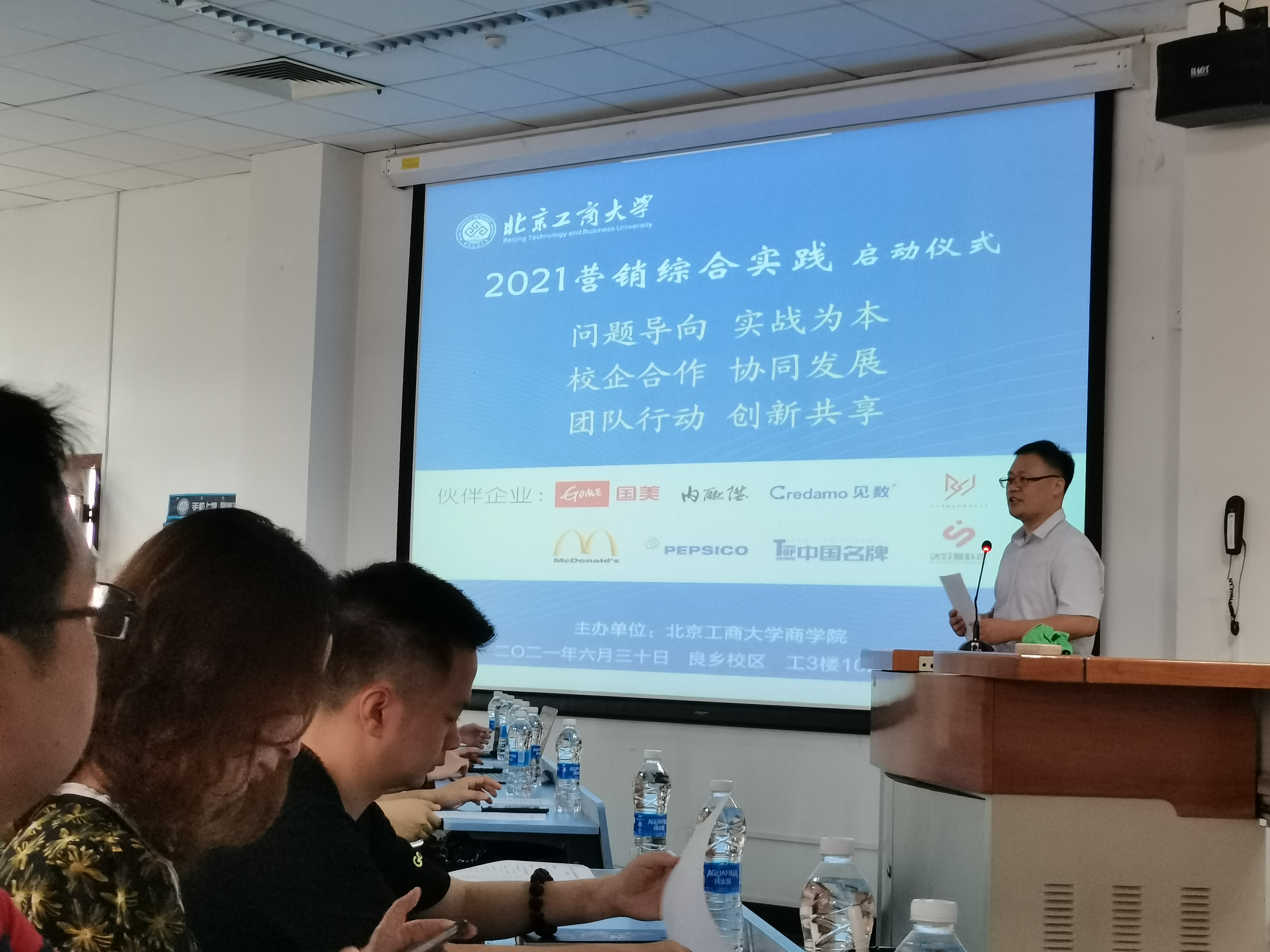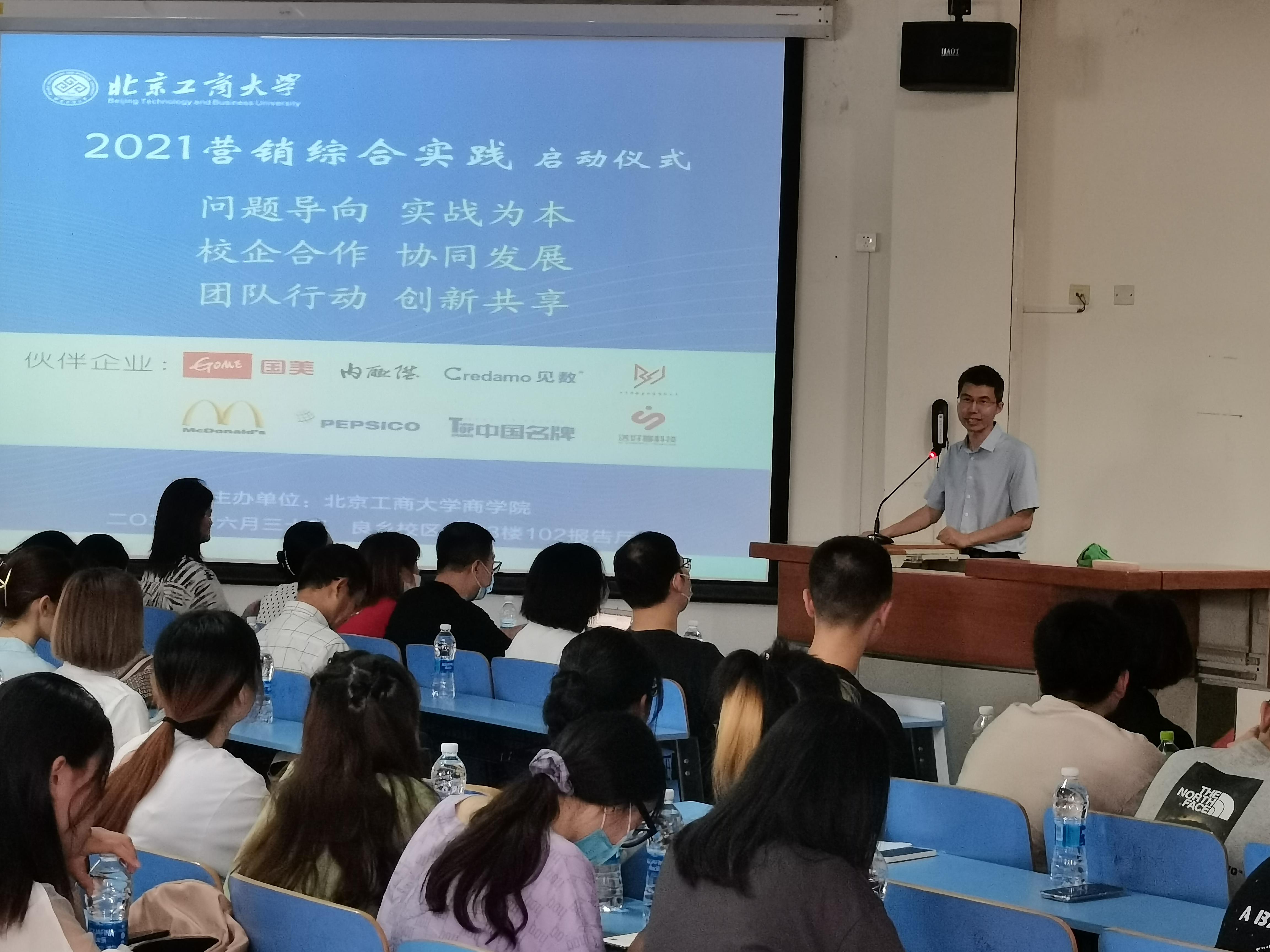 6月30日下午,2021年度高h小说 营销综合实践项目启动仪式在良乡校区举办。伙伴企业百事可乐校企合作专案负责人常雪杉、培训专员刘晨、麦当劳人事经理王爽和李洋、国美电器客服中心经理马明、北京博数嘉科技有限公司运营经理姜文君、宜达贸易(北京)有限公司副总经理杜鸿苇、Credamo人事经理丁迎颉、送好多科技有限公司董事长朱涛、人力资源总监亢晨晶、北京内联升鞋业股份公司人力总监杜杰等参加。高h小说 毛新述院长、张伟华副院长、王楠副院长、市场营销系教师以及18级市场营销专业全体学生出席了此次仪式,仪式由市场营销系主任王勇主持。
