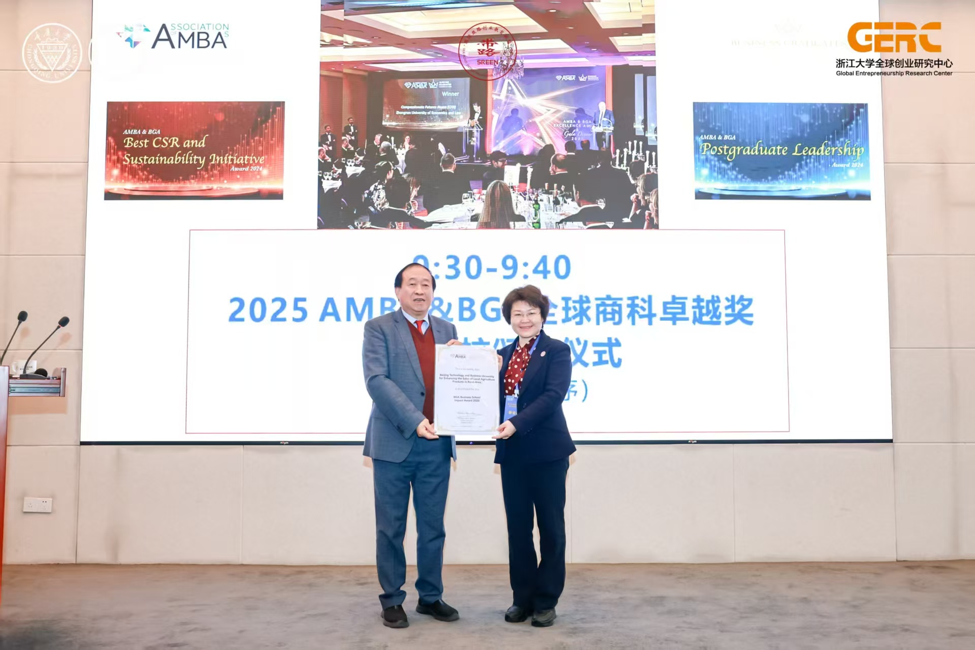 在“2025 AMBA&BGA全球商科卓越奖中国院校颁奖仪式”中,我院荣获“2025BGA高h小说 影响力奖提名奖”,何玉润院长代表学院上台领奖。