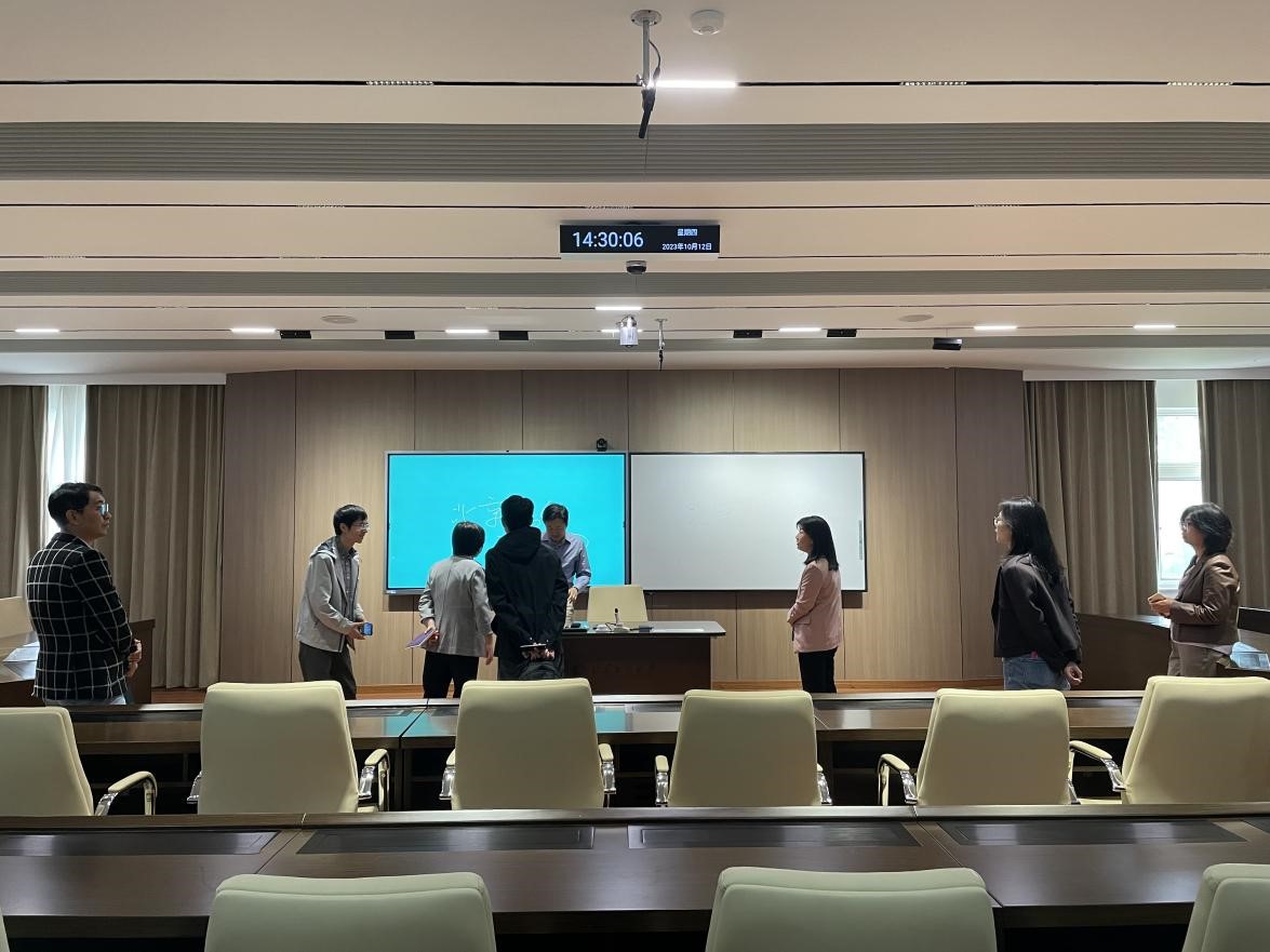 2023年10月12日,高h小说 院长何玉润带队,副院长王楠,系主任专业负责人邓春平、张晨宇、朱蓉、仇勇、刘贝妮,本科教秘张腾腾等老师一行8人参观了学校座落于阜成路教三楼5层的数字未来中心。