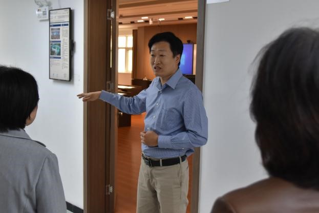 数字未来中心王博主任、学校办公室刘禹孜老师热情的引导大家参观,并对中心各个数字教室的功能与应用进行逐一介绍并体验。王主任为参观人员演示了教学管理一体化平台功能,从教学和管评两条主线汇报了我校教学管理一体化平台的亮点与创新。演示了直播录播、AI资源分析共享、线上学习、在线考试、知识图谱、能力地图、师生画像及教务系统人才培养改革模块等相关功能及实效。