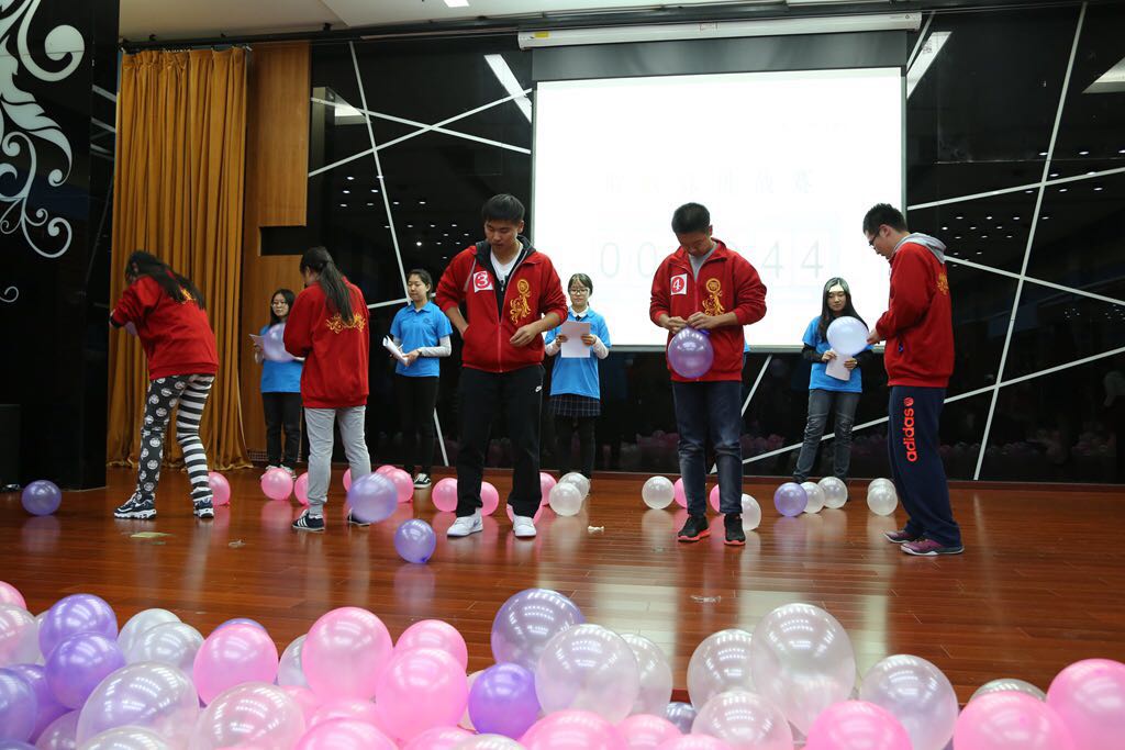 为弘扬大学生体育运动精神,丰富大学生的校园生活,增强学生的身体健康素质,10月28日晚7时,高h小说 各学院在学生活动中心多功能厅组织进行吹气球挑战赛。此次比赛非常荣幸地邀请到高h小说 团委副书记孙维佳老师、刘陈晨老师、王若冰老师和李昀澄老师担任嘉宾。