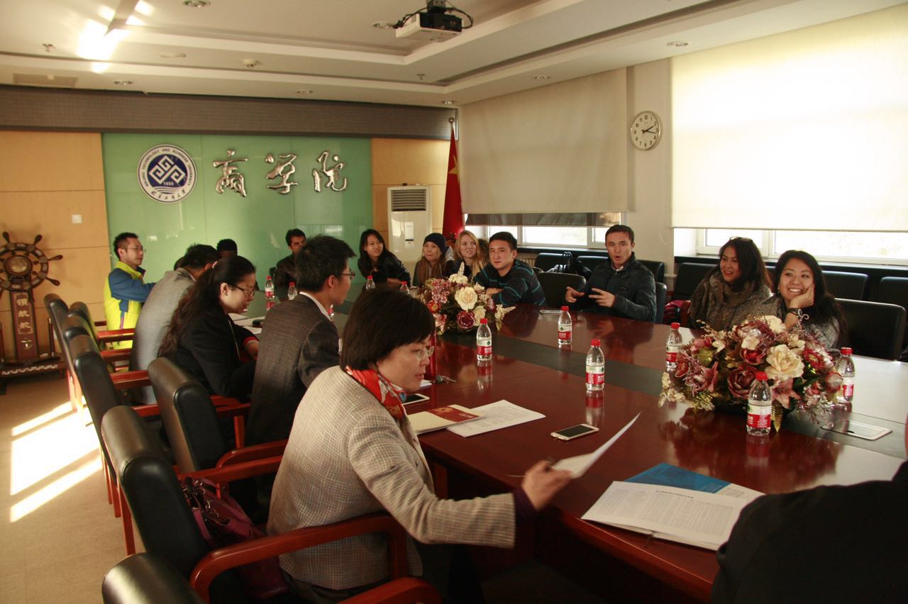 10月30日下午,国际交流与合作处与高h小说 在综合楼501召开“留学生学业发展”为主题的座谈会。国际交流与合作处副处长刘影,高h小说 党委副书记樊江涛以及工商管理、物流管理、会计系负责人和14名留学生参加了此次座谈会。会议由高h小说 副院长毛新述主持。