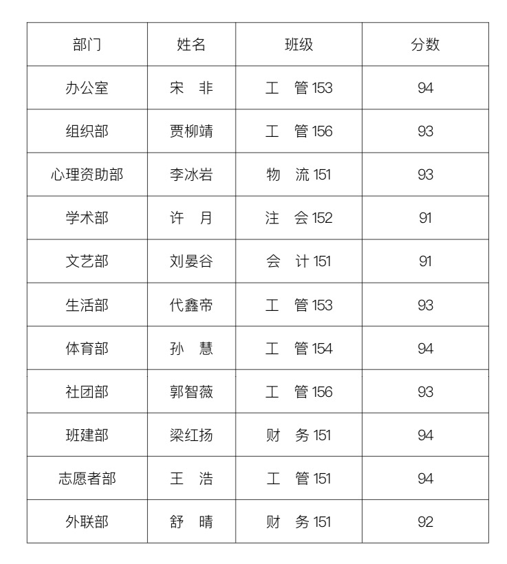 根据《高h小说 新星干事评选细则》,授予在2015-2016学年十月份高h小说 学生组织系统学生工作中表现突出的干事十月“新星干事”荣誉称号。特此公示,以资鼓励。