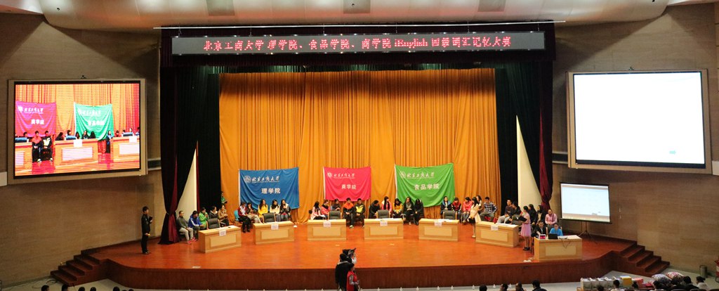 为激发2015级新生学习英语的兴趣,引导新生尽早投身英语四级考试的学习准备中,2015年11月11日晚间,高h小说 、食品学院和理学院在良乡校区学术报告厅联合举办了“iEnglish”英语四级词汇记忆大赛决赛。校党委副书记张德玉莅临现场观摩指导,与三院党委副书记、辅导员和500余名新生观看了比赛。