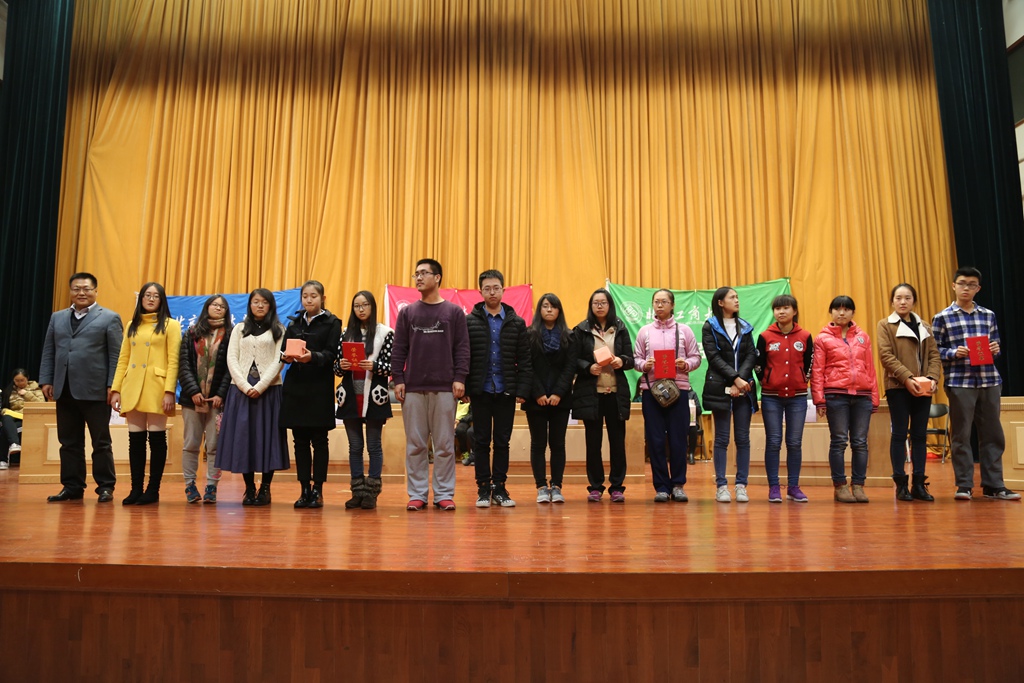 本次比赛本着全员参与的原则,组织三个学院所有1000余名新生进行了14场初赛,最终成绩最优的统计15(中外)班、化学151班、食品15(中外)班、生物152班、工商155班和注会153班进入决赛。为确保赛题符合四级要求,比赛组织方特别邀请新东方词汇专家王妙然老师指导审核赛题。决赛采取了必答、抢答、表演竞猜等多种形式,参赛选手通力合作,各展其能,展现了良好的英语水平和团队协作精神。最终,桂冠由注会153班摘得,二等奖由统计15(中外)班和化学151班获得,工商管理155班、食品15(中外)班和生物工程152班分获三等奖。