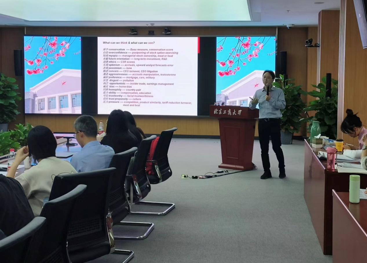 讲座伊始,毛新述教授对曾晓亮教授的到来表示热烈欢迎并对财会学科建设的支持表述衷心的感谢,张伟华教授对曾晓亮教授的学术成就进行了介绍。曾晓亮教授在国际顶级期刊TAR、JFE、CAR等发表论文60余篇,是企业社会责任信息披露领域创始人、会计最高荣誉美国会计协会(AAA)2022 年“会计文献杰出贡献奖”获得者, 多次荣获国际学术会议以及国际著名期刊的最佳论文奖,包括World Business Ethics Forum最佳CSR论文奖、CGIR (Corporate Governance: An International Review) 2021和2022最佳论文奖以及 APJFS (Asia-Pacific Journal of Financial Studies) 2022最佳论文奖。