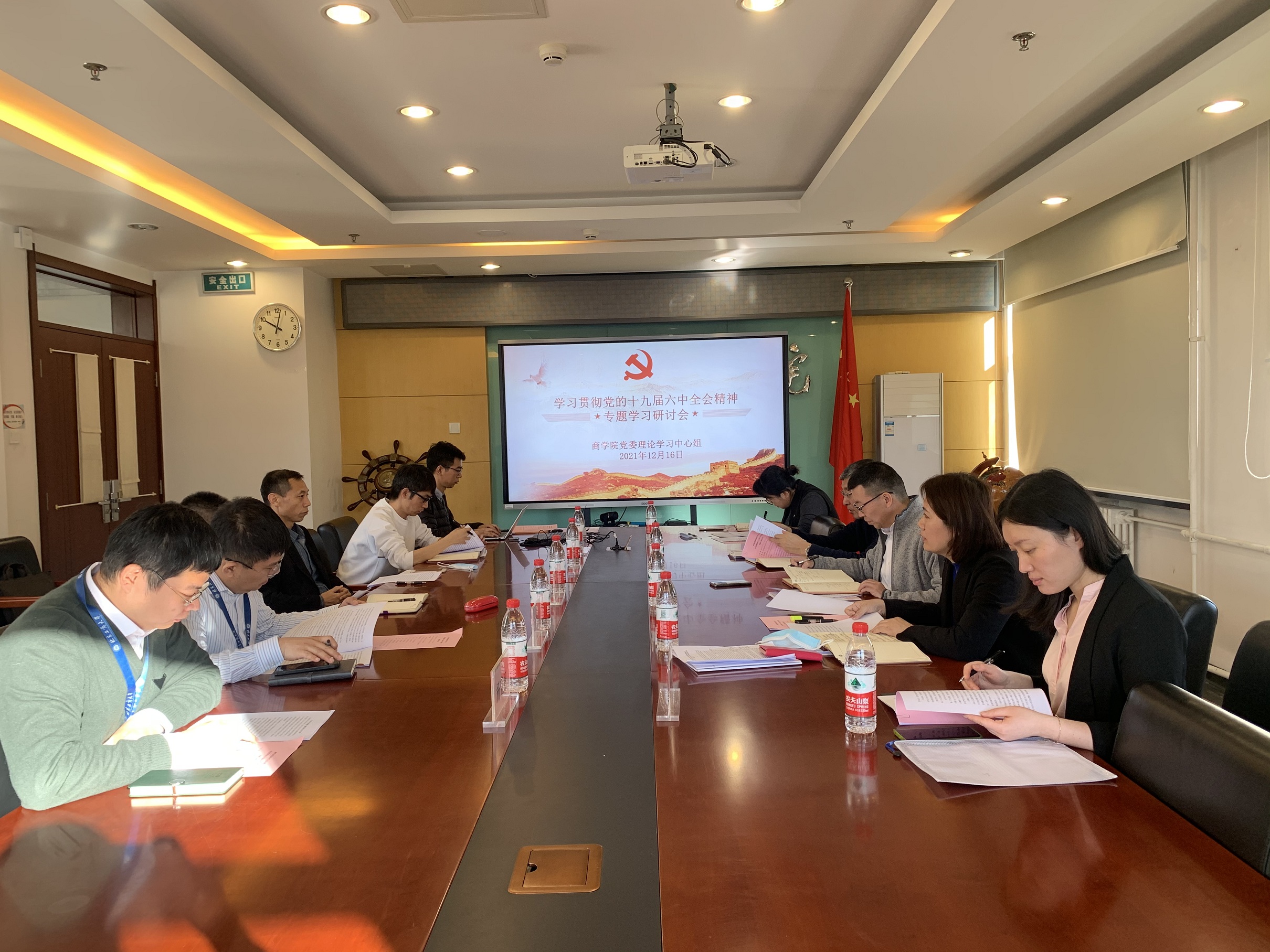 12月16日,高h小说 党委理论学习中心组在阜成路校区召开党的十九届六中全会精神专题学习会。学校副校长龚六堂到会指导。学院党委理论学习中心组成员和教师代表参加了会议,会议由学院党委书记张春萍主持。