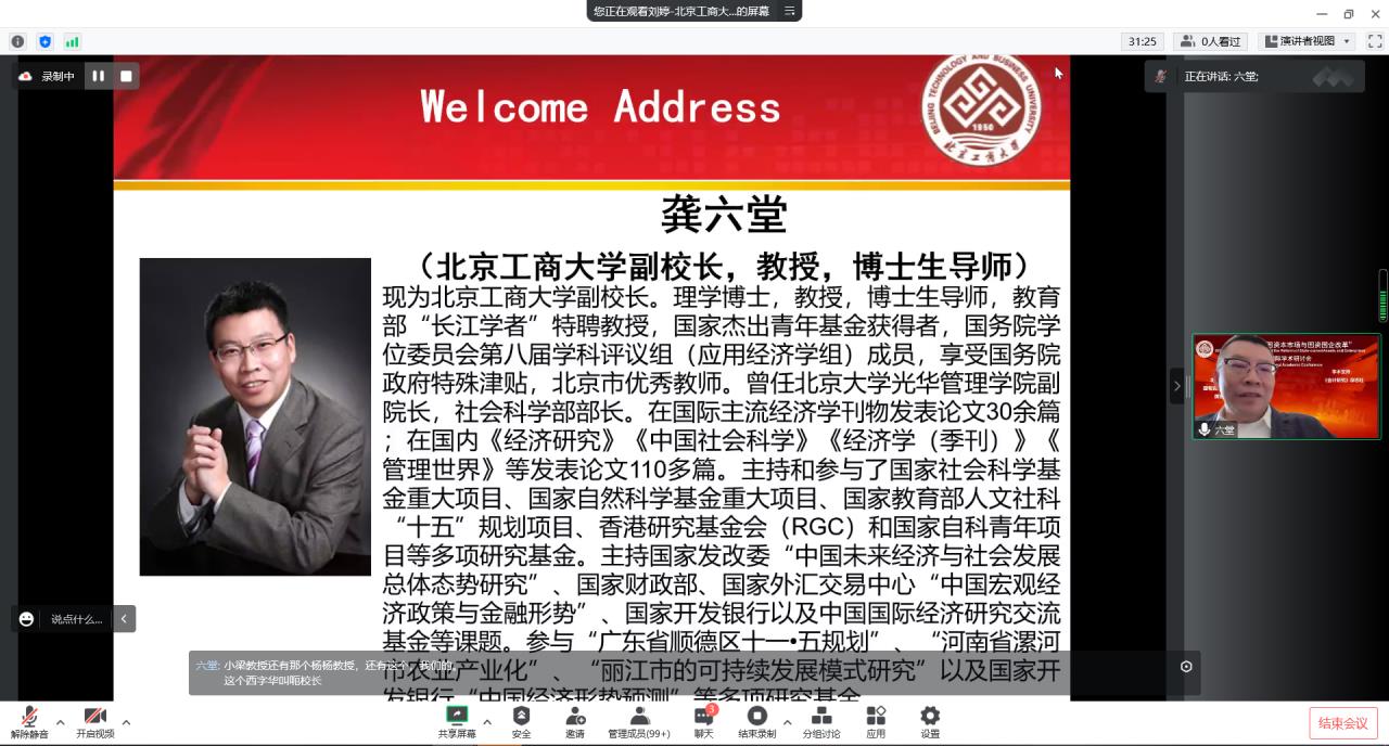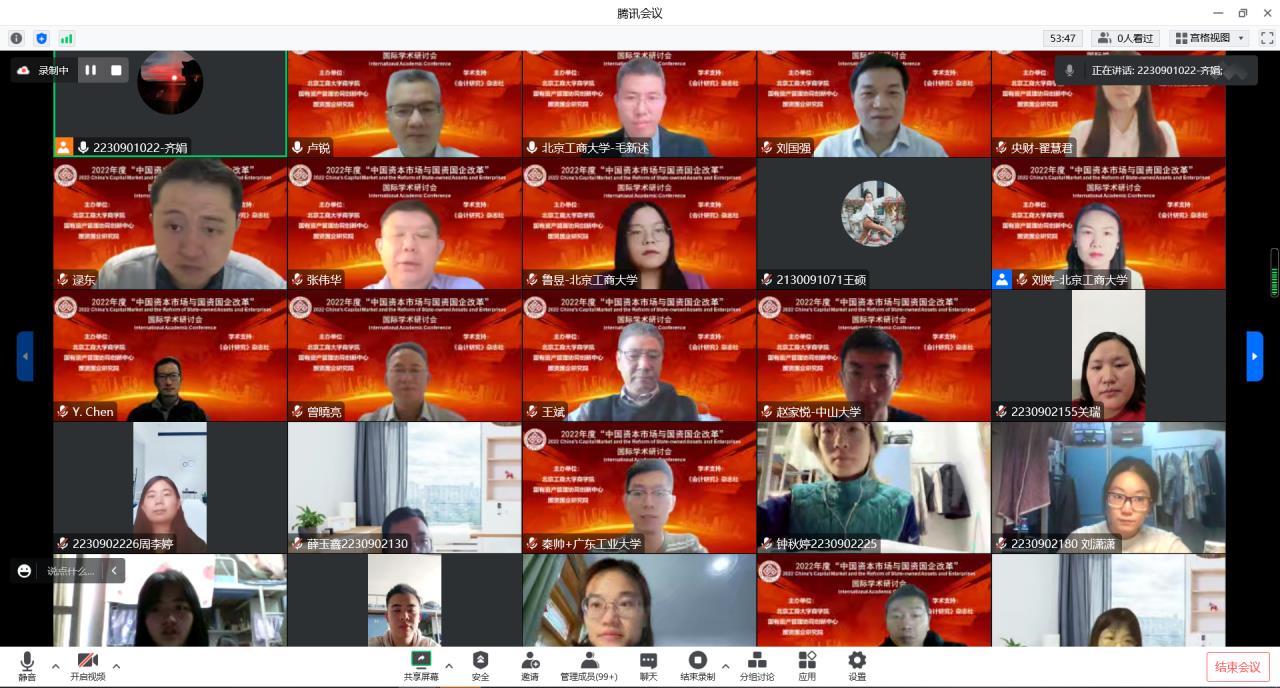 2022年11月26日,第二届“中国资本市场与国资国企改革”国际学术研讨会采用线上会议方式隆重召开。我校副校长龚六堂教授出席会议并致辞,我校原副校长谢志华教授出席并参加了会议。香港大学、澳大利亚麦考瑞大学、香港城市大学、中国南方科技大学、中国人民大学、厦门大学、复旦大学等30余所高校的专家学者、我校研究生院院长兼高h小说 院长毛新述教授、高h小说 副院长张伟华教授、我校高h小说 教师和研究生参加了此次会议。